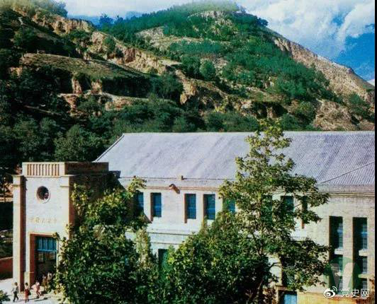 圖為中國共產黨第七次全國代表大會會址——延安楊家嶺中央大禮堂。