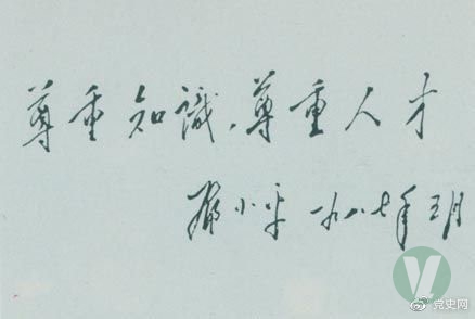 鄧小平1987年5月的題詞:尊重知識,尊重人才。