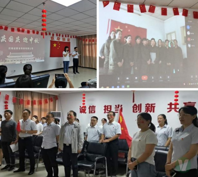 迎“雙節”活動,在一封公司致全體員工及其家屬的慰問信中拉開序幕,殷切的期望,飽含深情、鼓勵的話語,催人奮進。隨后,公司領導班子帶頭合唱《歌唱祖國》將活動推向高潮。本次活動采取主會場+釘釘視頻連線的方式進行,各部門、各倉庫員工紛紛展示才藝,或通過歌聲為新中國71周年華誕獻上最誠摯的祝福,或通過詩朗誦、舞蹈等節目表達全體員工歡度中秋傳統佳節的喜悅心情。當《紅旗飄飄》《我的中國心》《在北京的金山_上》一曲曲耳熟能詳、氣勢磅礴的經典歌曲和《祖國頌》《沁園春 ●雪》一首首激情昂揚、聲情并茂的詩詞響起時,同志們個個心潮澎湃,鏗鏘有力的聲音,久久回響。最后,在一曲全體職工齊聲高唱《團結就是力量》的旋律中,活動圓滿結束。