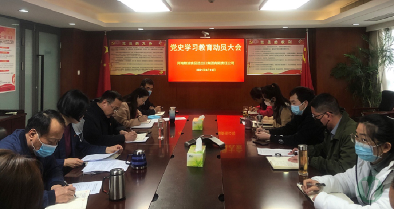 3月19日下午,河南糧油食品進出口公司召開黨史學習教育動員部署大會,認真學習貫徹習近平總書記在黨史學習教育動員大會上的重要講話精神,貫徹落實河南糧投集團黨史學習教育動員會精神,安排部署公司黨史學習教育相關工作。公司黨支部書記、董事長姚清波同志做動員講話,他強調,要認清開展黨史學習教育的重要性,要求公司黨史學習教育高標準起步、高質量開展。