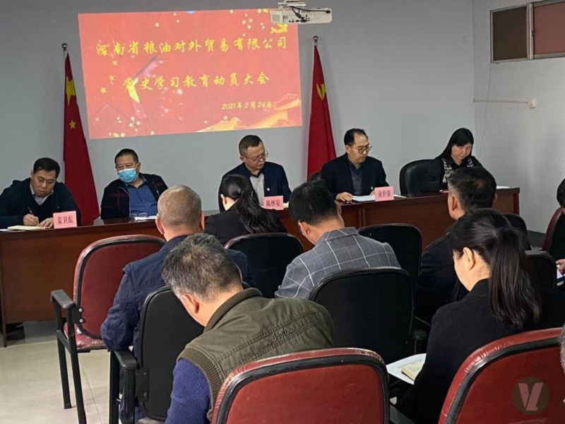 瀏覽次數(shù):4516次3月24日上午,河南省糧油對外貿(mào)易有限公司召開黨史學習教育動員大會,學習貫徹習近平總書記在黨史學習教育動員大會上的重要講話精神,認真落實河南糧投集團黨委關于開展黨史學習教育的工作要求,對公司黨史學習教育進行動員部署。公司董事長、總經(jīng)理、黨總支副書記陳懷安出席會議并作動員講話,會議由公司黨總支書記謝世強主持。